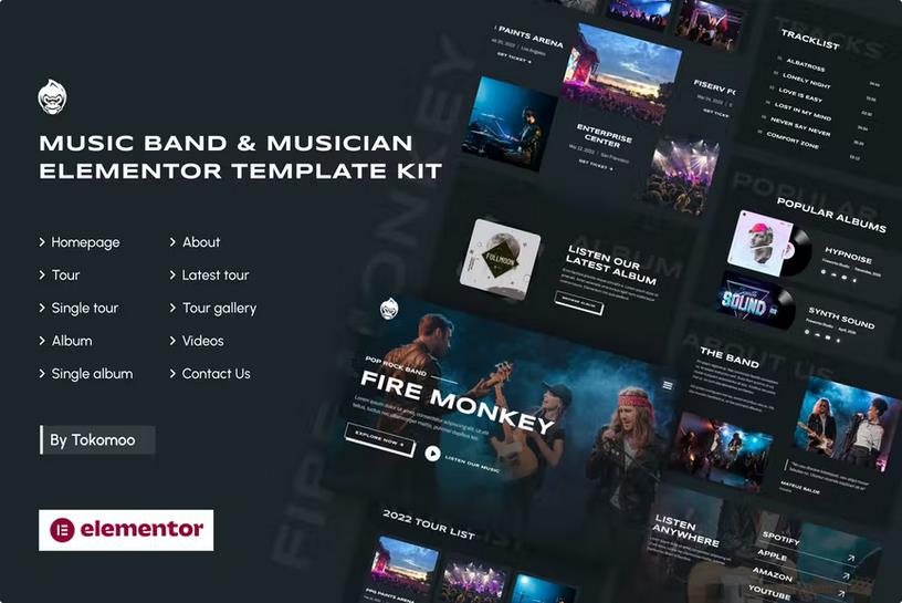 Fire Monkey | Music Band & Musician Elementor Template Kit Latest Version